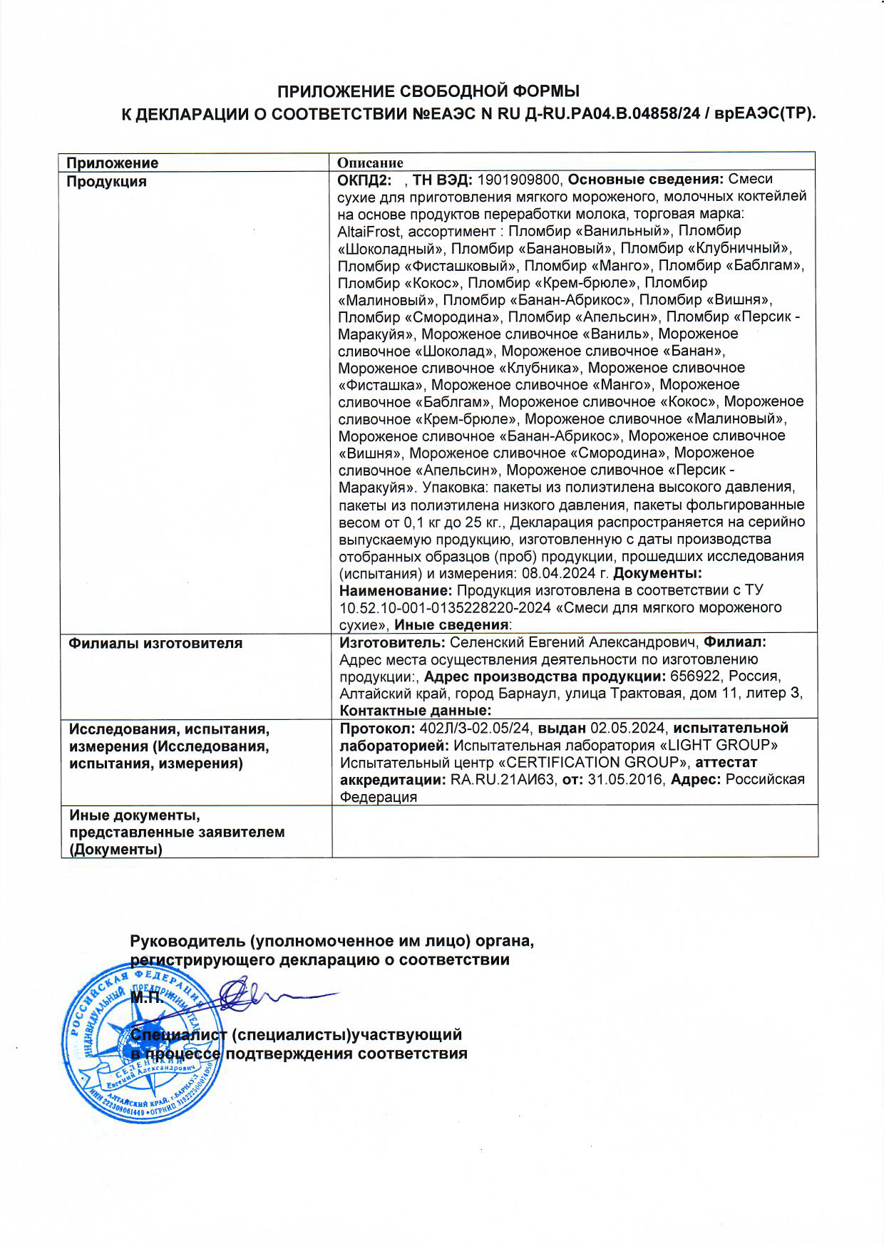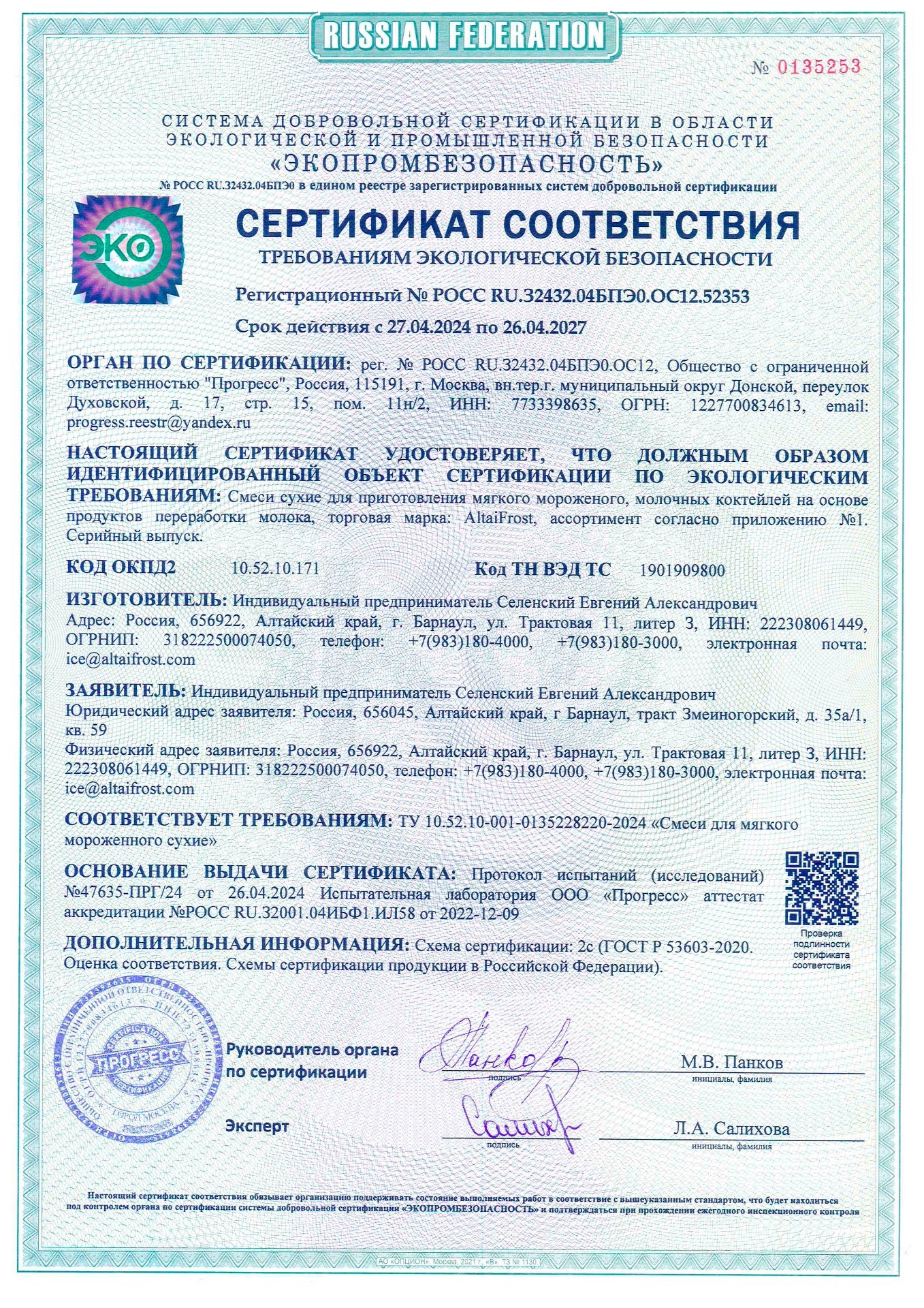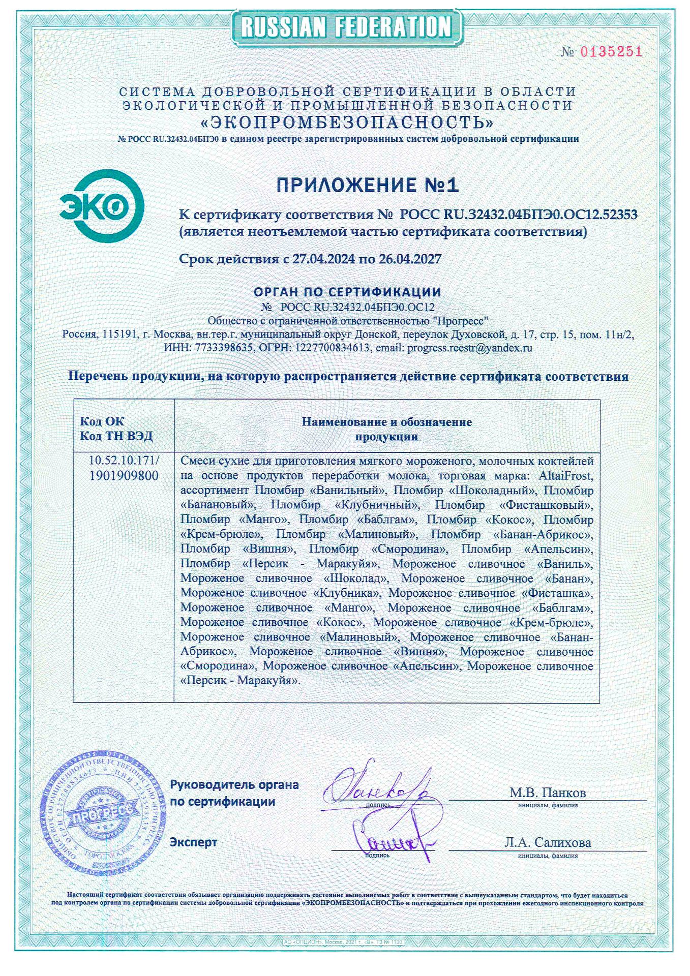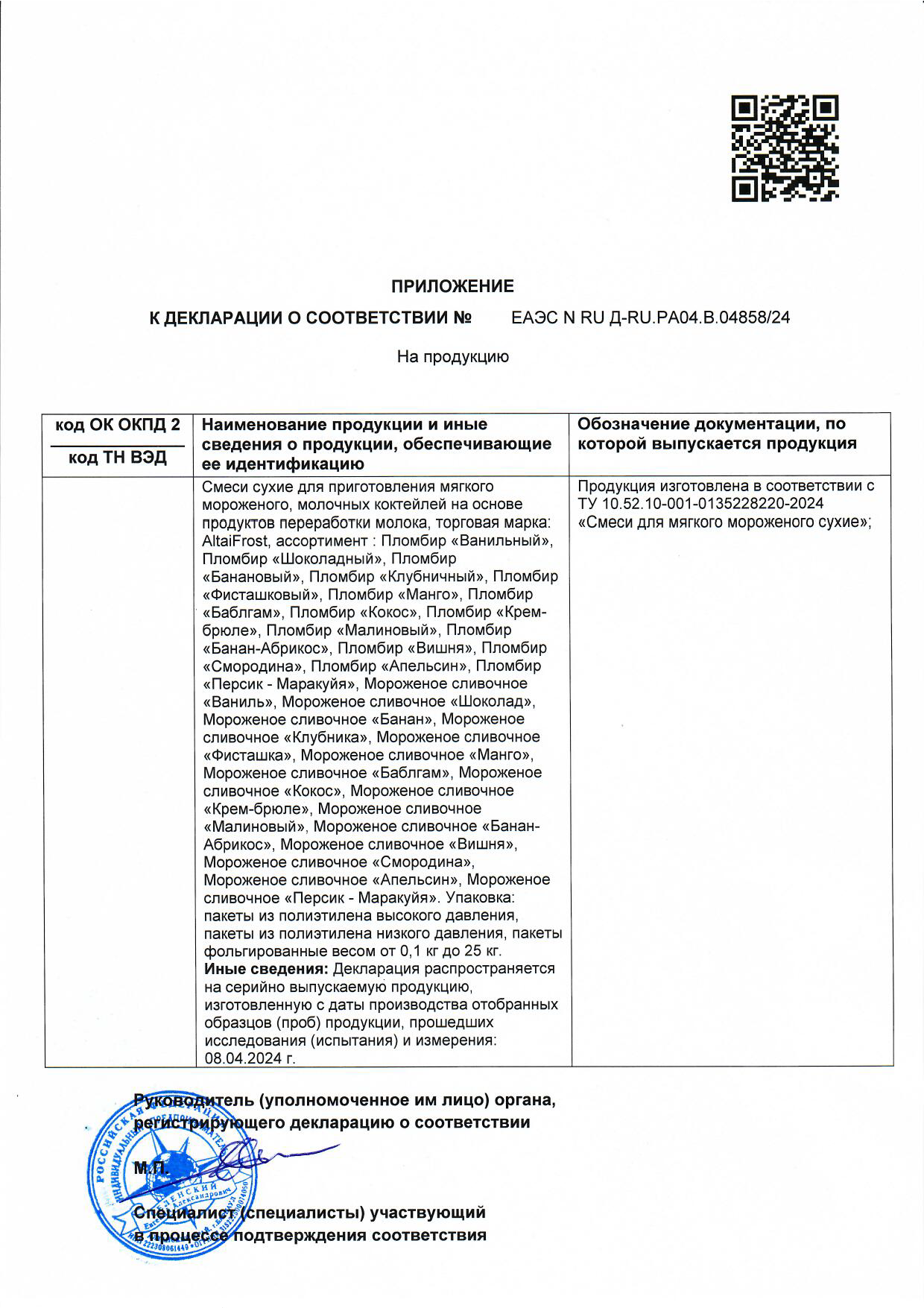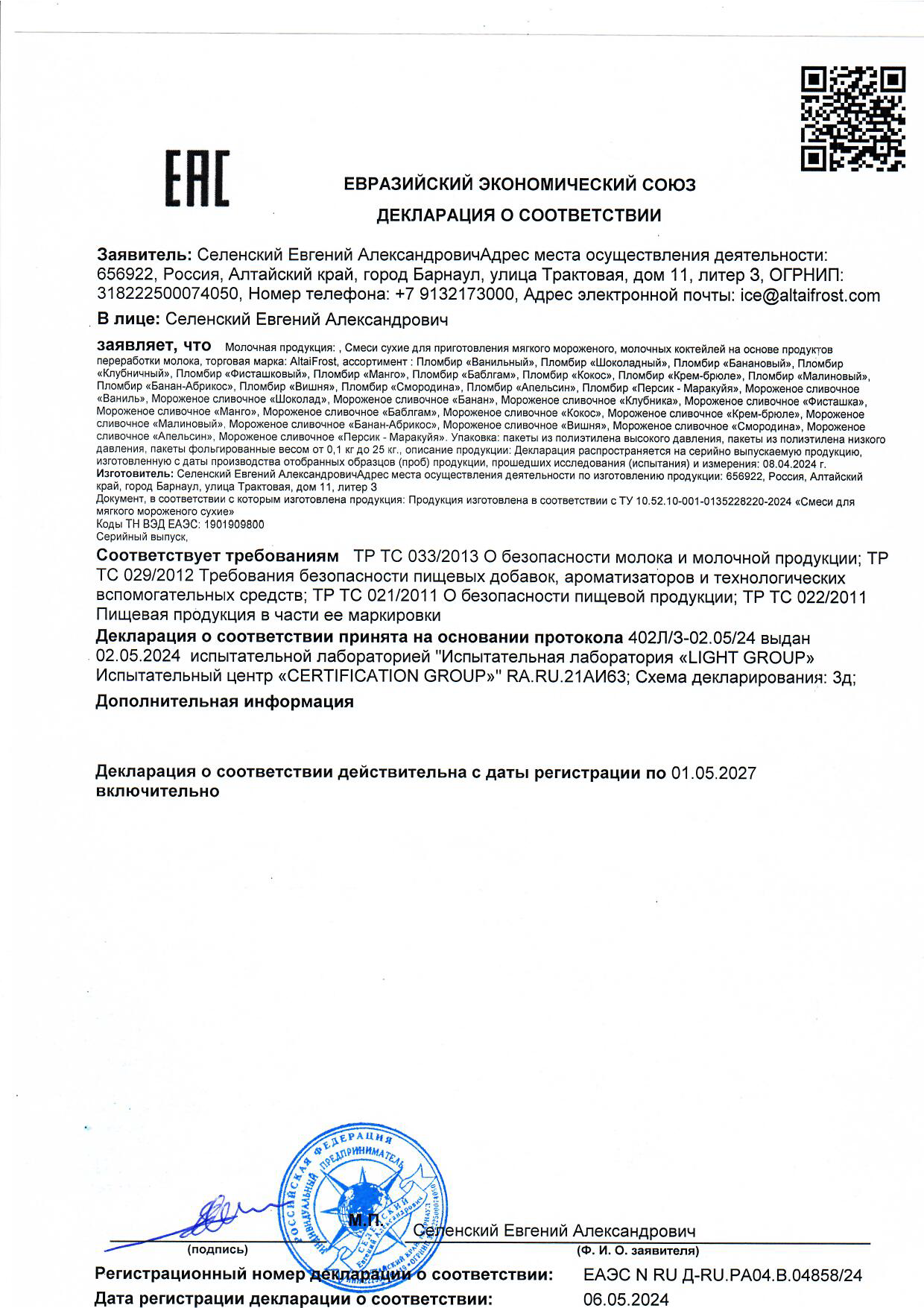 Смеси AltaiFrost подходят для любого производственного цикла, под любую концепцию холодных десертов. Мягкое мороженое, жареное (ролл) мороженое. Технология производства смеси AltaiFrost допускает взвешенное изменение рецептуры, наличие добавок в виде фруктового пюре (если позволяет фризер). Консистенция раскрывает непревзойденную воздушность, применение воздушной помпы не обязательно.